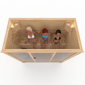 Трехместная финская сауна кабина из кедра с электрокаменкой
